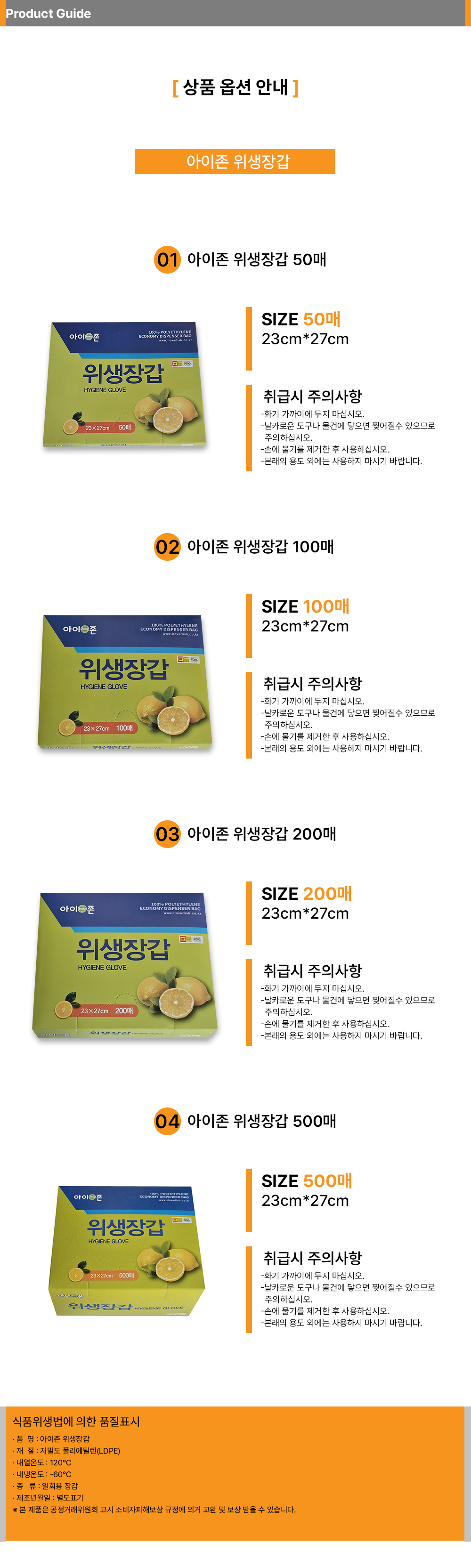 ■ 품명 및 모델명 : 위생장갑 100매 27cm