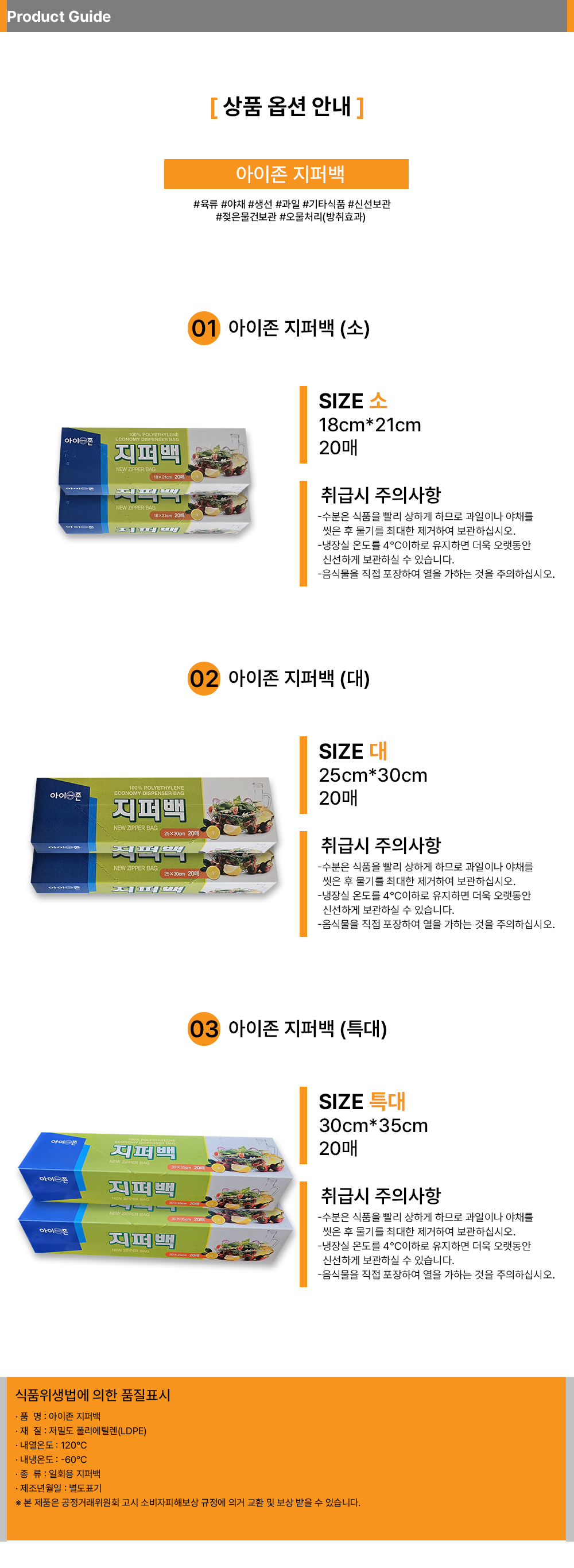 ■ 품명 및 모델명 : 지퍼백 20매 소(18x20cm)