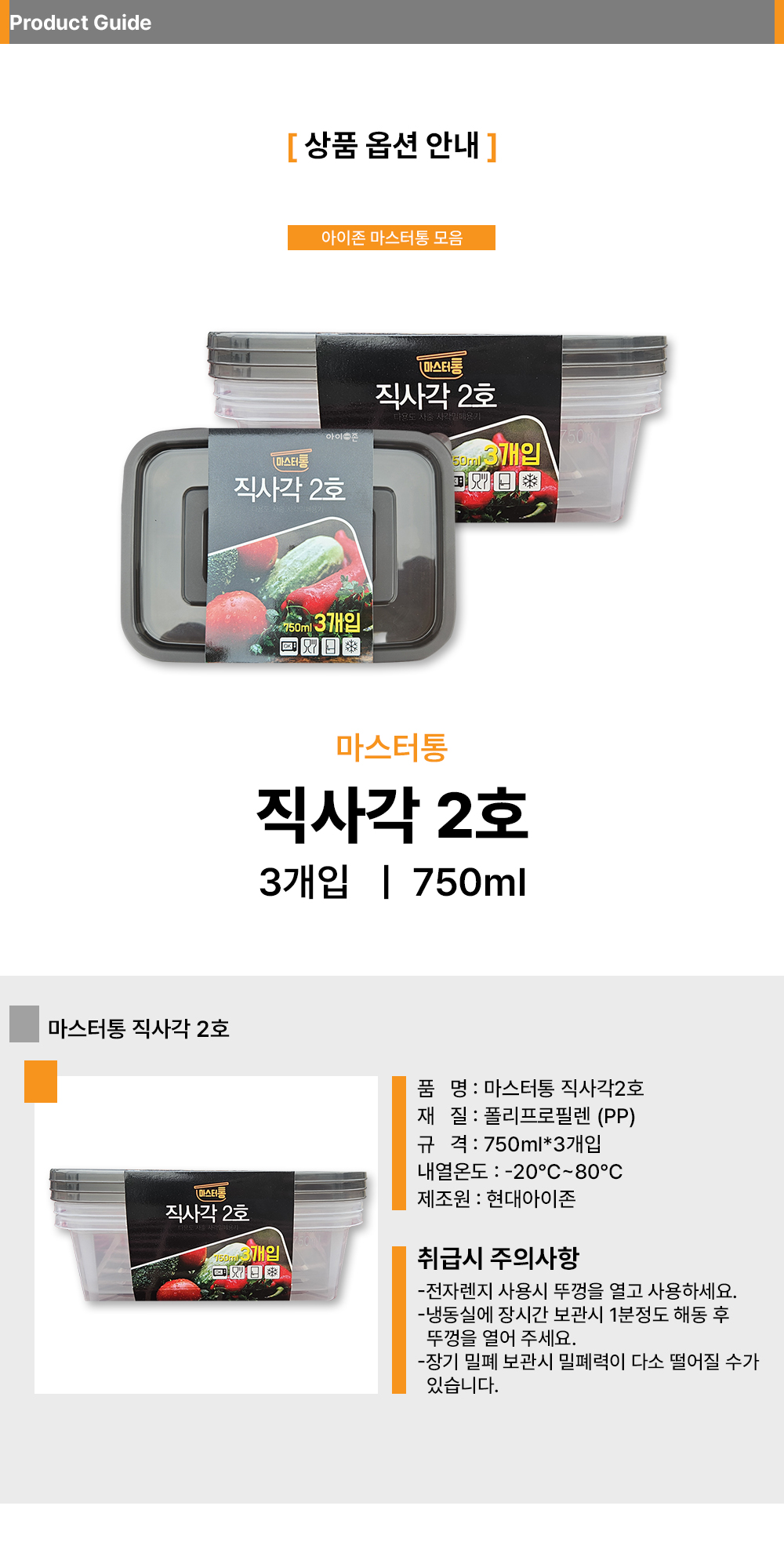 ■ 품명 및 모델명 : 밀폐용기 직사각2호 3p(750ml/18.5*13.3*5.5cm)