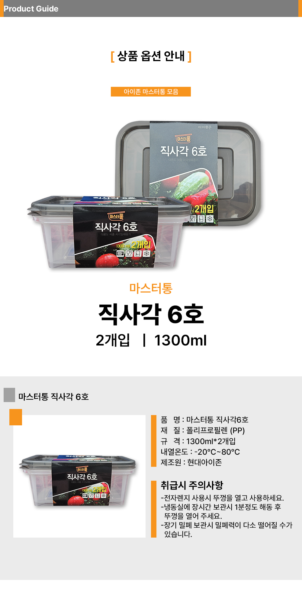 ■ 품명 및 모델명 : 밀폐용기 직사각6호 2p(1300ml/19.5*14.5*7.8cm)
