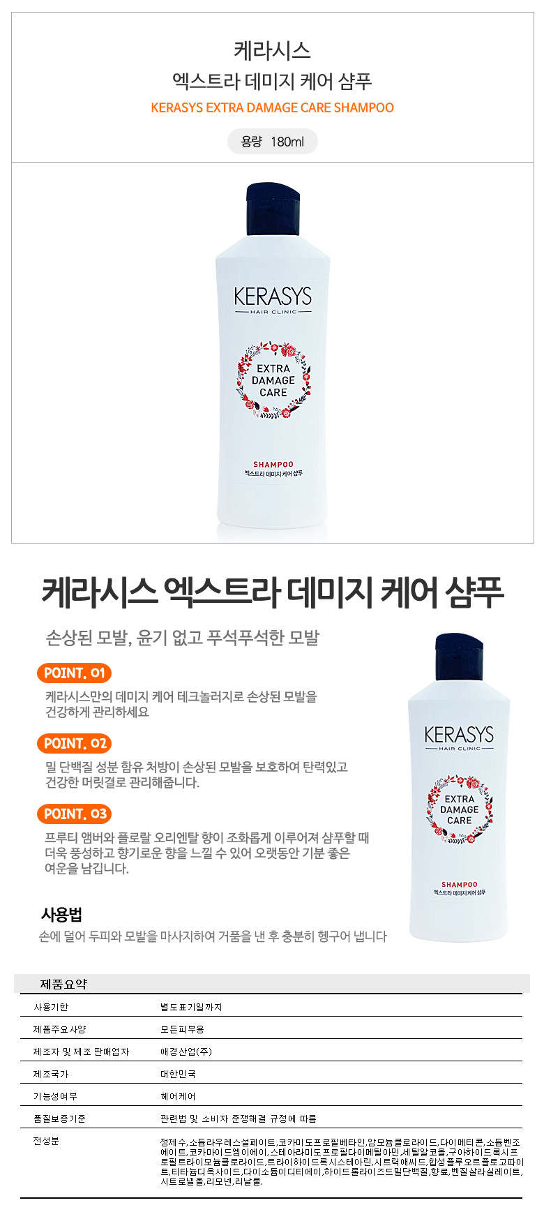 ■ 품명 및 모델명 : 애경 케라시스 엑스트라 데미지 케어 휴대용 샴푸 180ml(60*110*40mm)