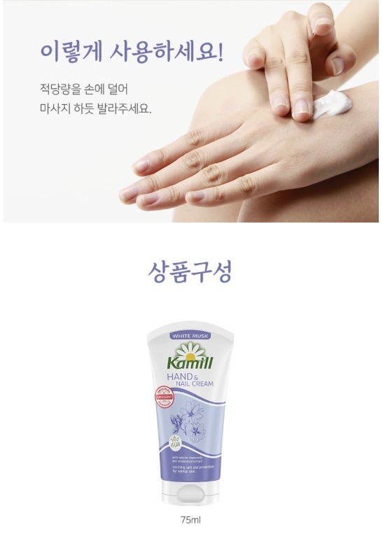 ■ 품명 및 모델명 : 카밀 핸드 & 네일 크림 75ml 화이트머스크(50*110*35mm)