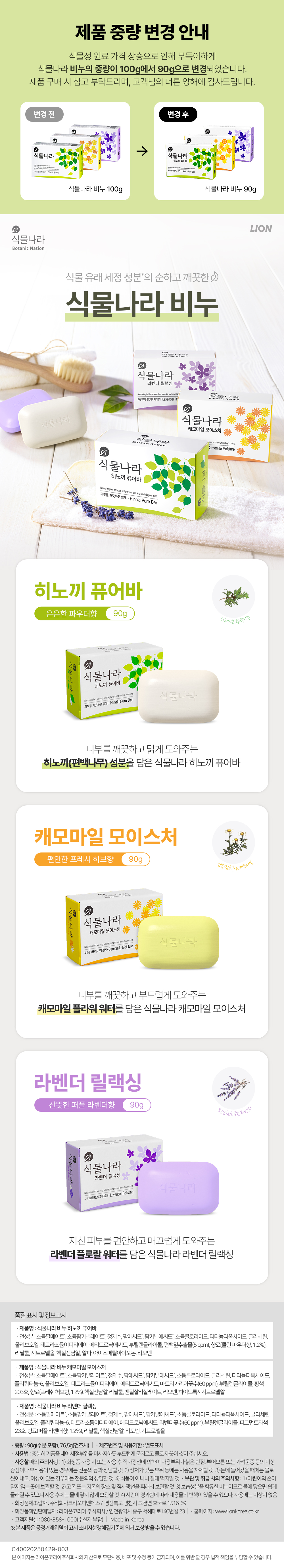 ■ 품명 및 모델명 : 식물나라 비누 90g*4입 라벤더 릴랙싱