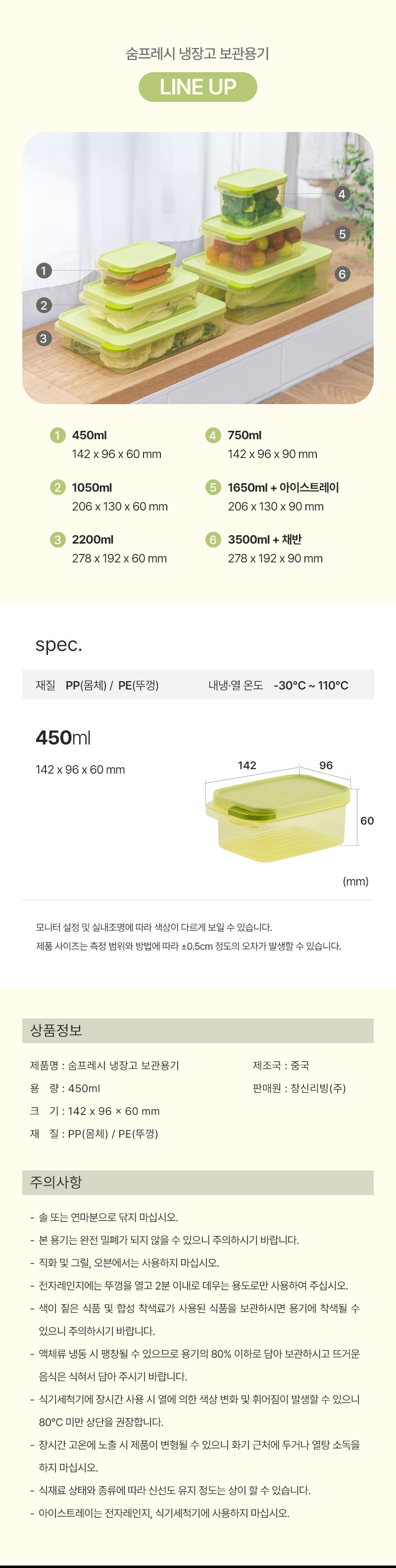■ 품명 및 모델명 : 숨프레시 냉장고보관용기 750ml/GN/142*96*90mm)
