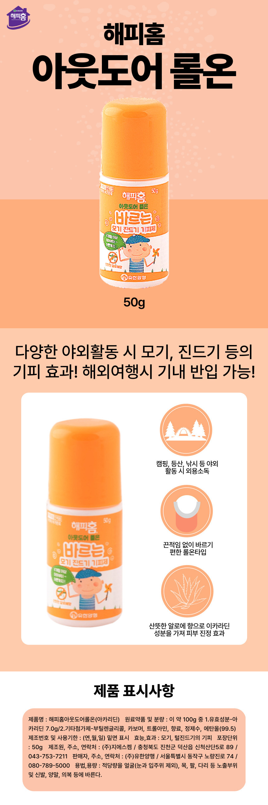 ■ 품명 및 모델명 : 유한양행 해피홈 아웃도어 롤온 50g
