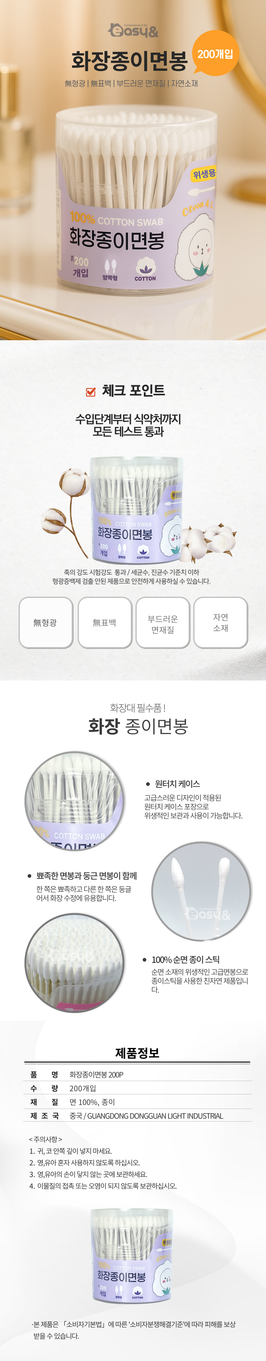 ■ 품명 및 모델명 : 화장 종이 면봉 200입(100*100*100mm)