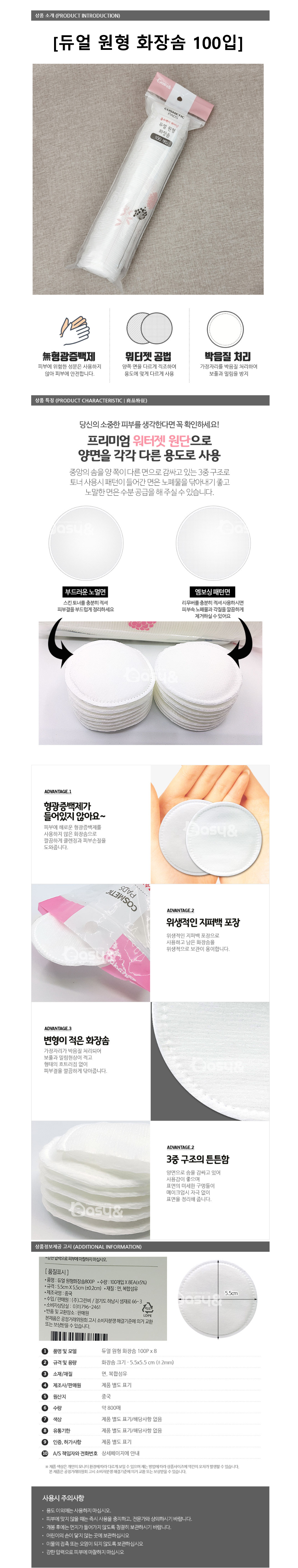 ■ 품명 및 모델명 : 듀얼 원형 화장솜 100입(32*100*100mm)