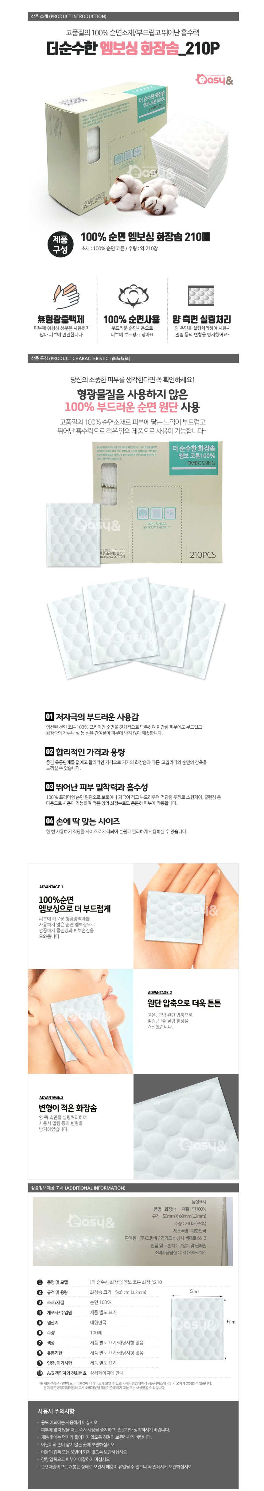 ■ 품명 및 모델명 : 엠보 코튼 화장솜 210입(24*100*100mm)