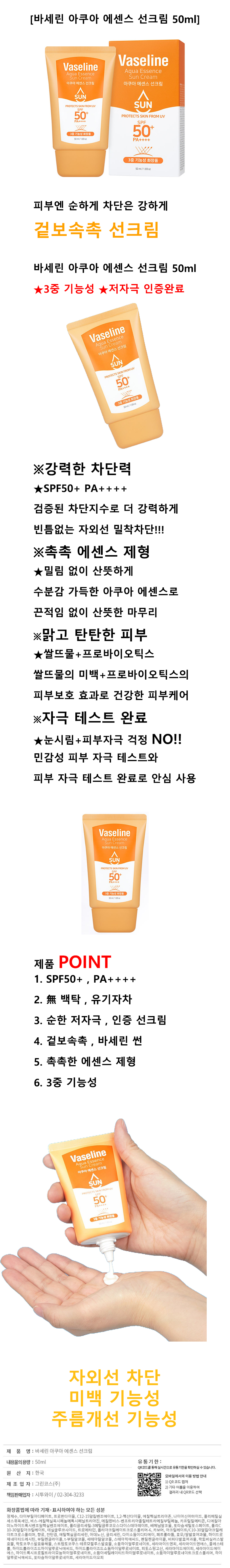 ■ 품명 및 모델명 : 바세린 아쿠아 에센스 선크림 50ml(40*100*100mm)