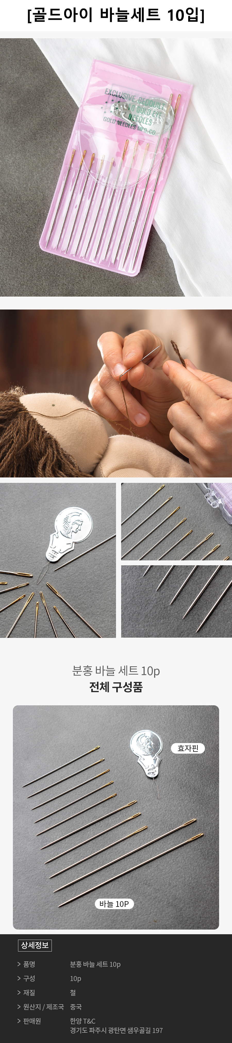 ■ 품명 및 모델명 : 골드아이 바늘 세트 10입(10*70*10mm)